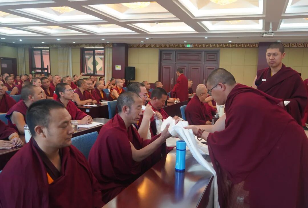经师代表永忠祖培勉励学员要勇担藏传佛教健康传承的使命,效法历代善知先贤,不畏困难、精进学修、守法持戒;维护团结、尊敬师长、和睦共处,发扬爱国爱教的优良传统;坚持与时俱进,深入挖掘和阐释教义教规中有利于社会和谐、时代进步、健康文明的内容。