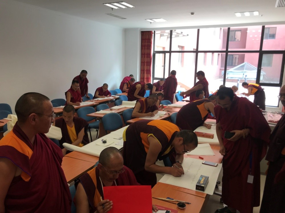 9月30日,中国藏语系高级佛学院组织全体师生开展“翰墨飘香迎国庆”书法比赛及“迎新杯”篮球赛,欢度中秋,喜迎国庆。