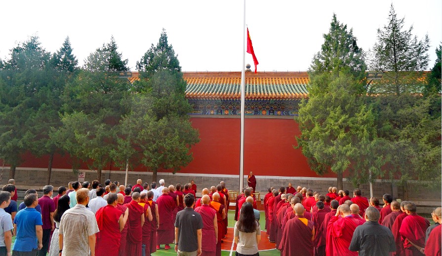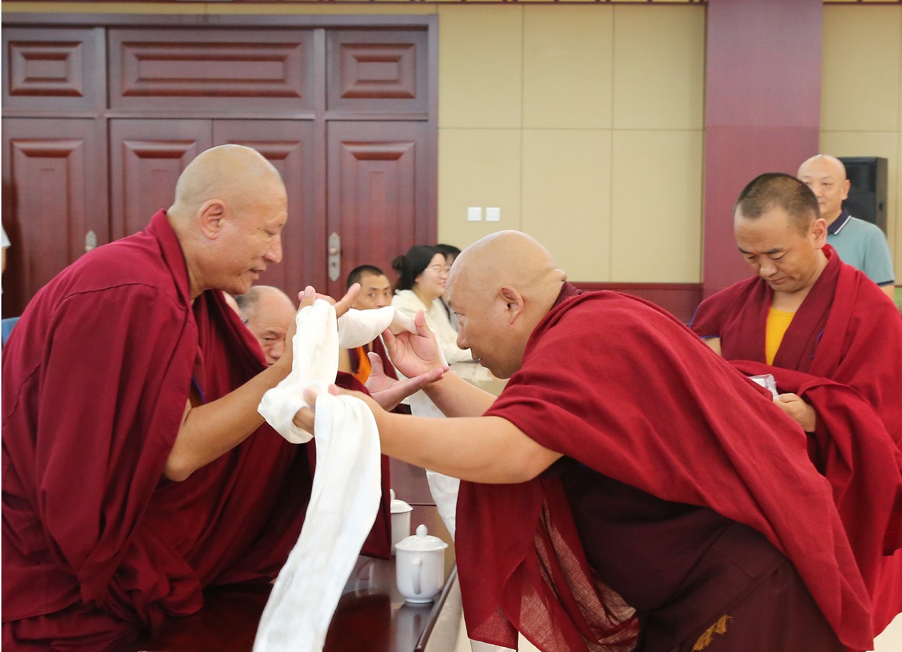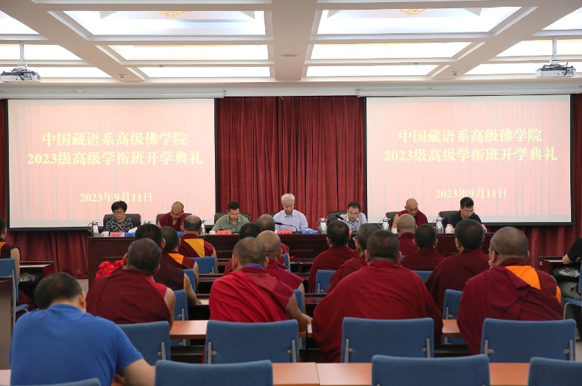 9月11日上午,中国藏语系高级佛学院2023级高级学衔班开学典礼在庄严的升国旗仪式中拉开序幕。中央统战部七局有关同志、学院领导及全体师生参加了升国旗仪式和开学典礼。在开学典礼前,学员代表向与会经师、教师献哈达,致以崇高的敬意。