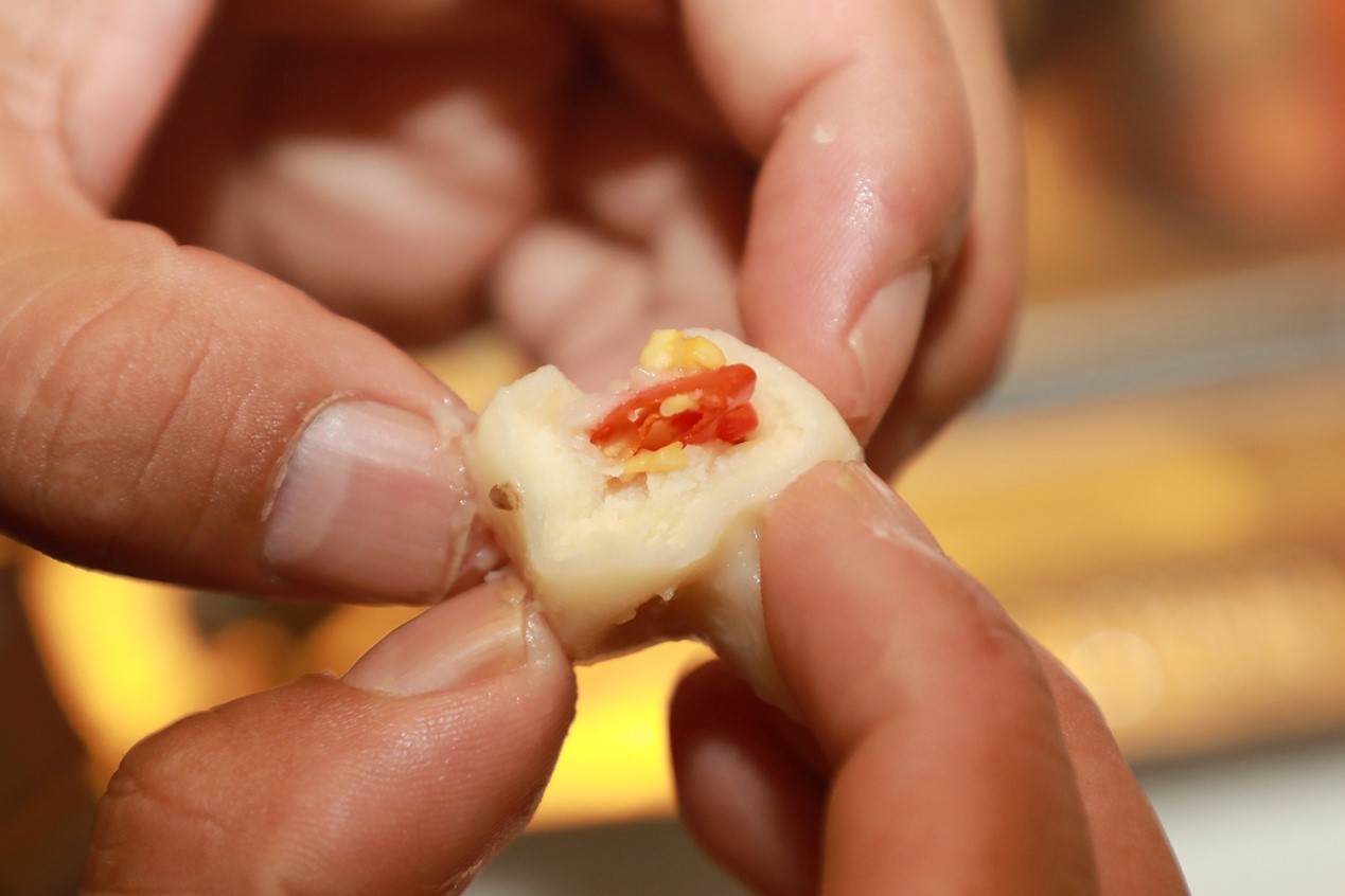图为学员吃到含有辣椒的“古突”
