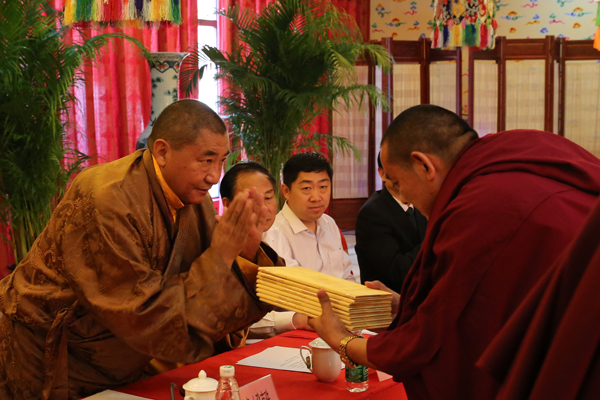 中国佛教协会副会长、中国佛教协会西藏分会会长、藏传佛教学衔工作指导委员会副主任、中国藏语系高级佛学院顾问珠康·土登克珠活佛,分别向获得“拓然巴”高级学衔的14名僧人和获得“智然巴”中级学衔的22名僧人颁发了学衔证书。