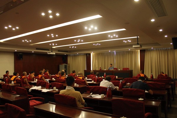 8月29日上午,王长鱼常务副院长以《经师要做藏传佛教坚持中国化方向的引领者》为题,为进修班讲课。辅导大家要认真学习深刻领会习近平总书记关于宗教坚持中国化方向的重要论述。习近平总书记对新形势下的宗教和宗教工作的新论述新要求,是做好工作的思想法宝。作为经师深刻领会精神实质,潜心体会深邃内涵。王长鱼同志分析说宗教坚持中国化方向必须以社会主义核心价值观为引领,需要中华传统文化的浸润,应当符合当代中国发展进步要求,要发挥宗教界积极性和自觉性。历史证明坚持中国化方向是我国宗教文明进步的方向。我国宗教坚持中国化方向,就是走符合时代进步要求的健康发展之路,使宗教能够促进社会和谐,有益经济发展,推动文化繁荣,加强民族团结,维护祖国统一,为人类和平与文明对话作出重要贡献。藏传佛教人才培养是保证藏传佛教坚持中国化方向的基础。经师在藏传佛教人才培养中承担着重要责任,经师要用知识和人格的力量引领和感召学员。藏传佛教教规教义阐释是经师发挥引领作用的重要途径,应当按照习近平总书记提出的弘扬藏传佛教扬善抑恶、平等包容、扶贫济苦等积极思想的要求,积极对藏传佛教教规教义作出符合社会主义的具体阐释,这是弘扬佛法的正确作为。